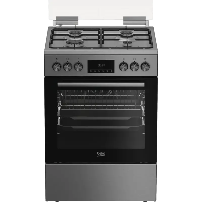 Freestanding cooker, electric oven, 72-liter cooking chamber, tempered glass inner door, heating modes: defrost, grill, fan-assisted grill, convection, 3D cooking, convection, display, gas hob, natural gas operation, energy efficiency class A, width: 60 cm, height: 85 cm, depth: 60 cm