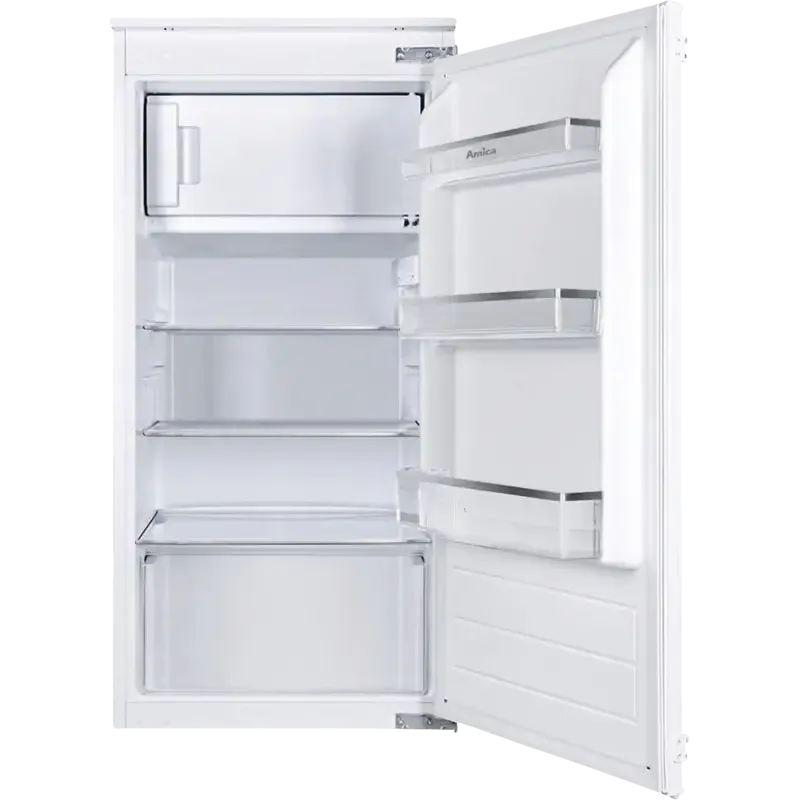 Built-in Refrigerator with Freezer Design: Slide-in Door Assembly Door Stop: Right Door Hinge Reversible Door Hinge: Yes Total Usable Volume Total Refrigerator and Freezer Capacity: 140 L Cooling Zone Specifications Refrigerator Capacity: 124 L Freezer Capacity: 16 L Performance Specifications Automatic Defrost and Cooling Interior Glass Shelves: 3 Fruit/Vegetable Container: 1 LED Lighting Niche Dimensions Minimum Niche Width: 56 cm Maximum Niche Width: 56 cm Minimum Niche Height: 102.2 cm Maximum Niche Height: 102.5 cm Product Dimensions (Unpacked) Width: 54 cm Height: 102 cm Depth: 54 cm Weight: 31 kg Logistics, including Packaging Width: 57.3 cm Height: 107 cm Depth: 57.3 cm Weight: 34 kg EU Label for Refrigeration Appliances (EU21) 2019/2016 Energy Efficiency Class on a scale from A to G: Energy Efficiency Class D Annual Energy Consumption: 117 kWh/year Total Volume of All Freezer Compartments: 16 liters Total Volume of All Refrigerated Compartments: 124 liters Noise Level: 35 dB(A) Noise Emission Class: Noise Emission Class B Miscellaneous Manufacturer Part Number: 1195087